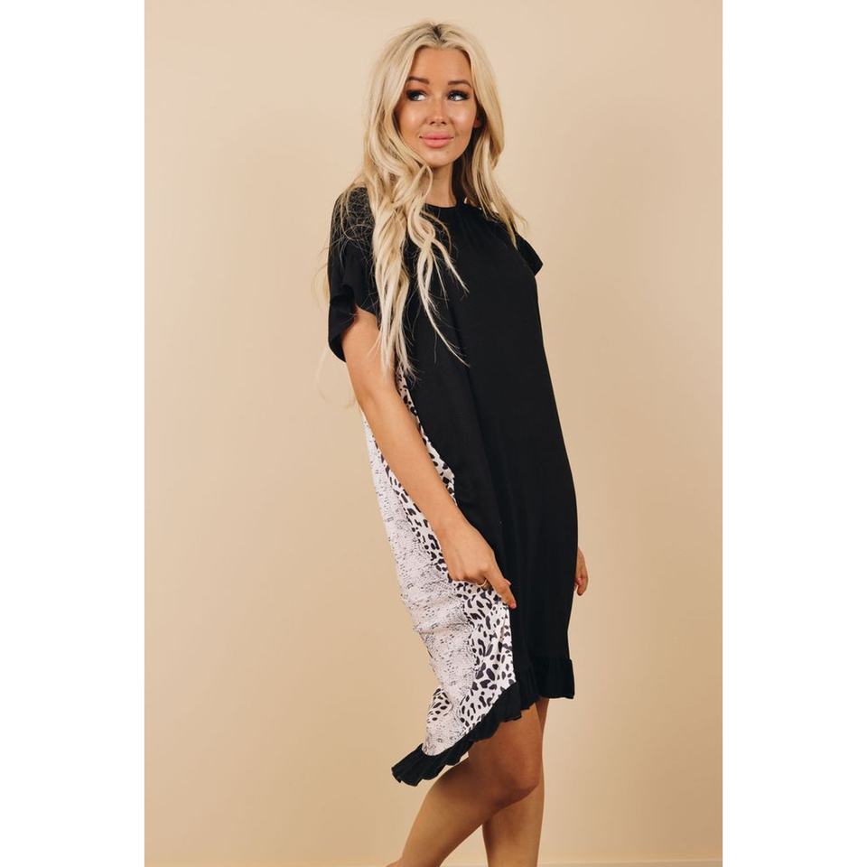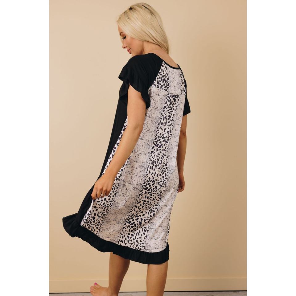 TD Elegent Animal Print Dress XS Size Puff Sleeve Style Ruffles Decoration Sublimated Floral Pattern for Club Day Parties Custom