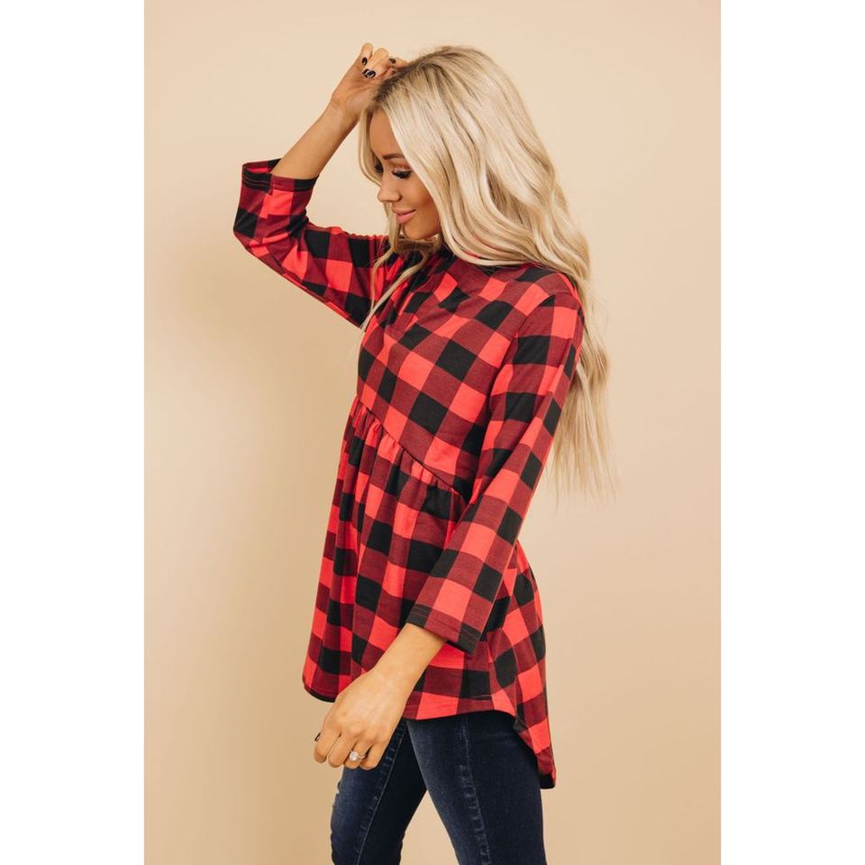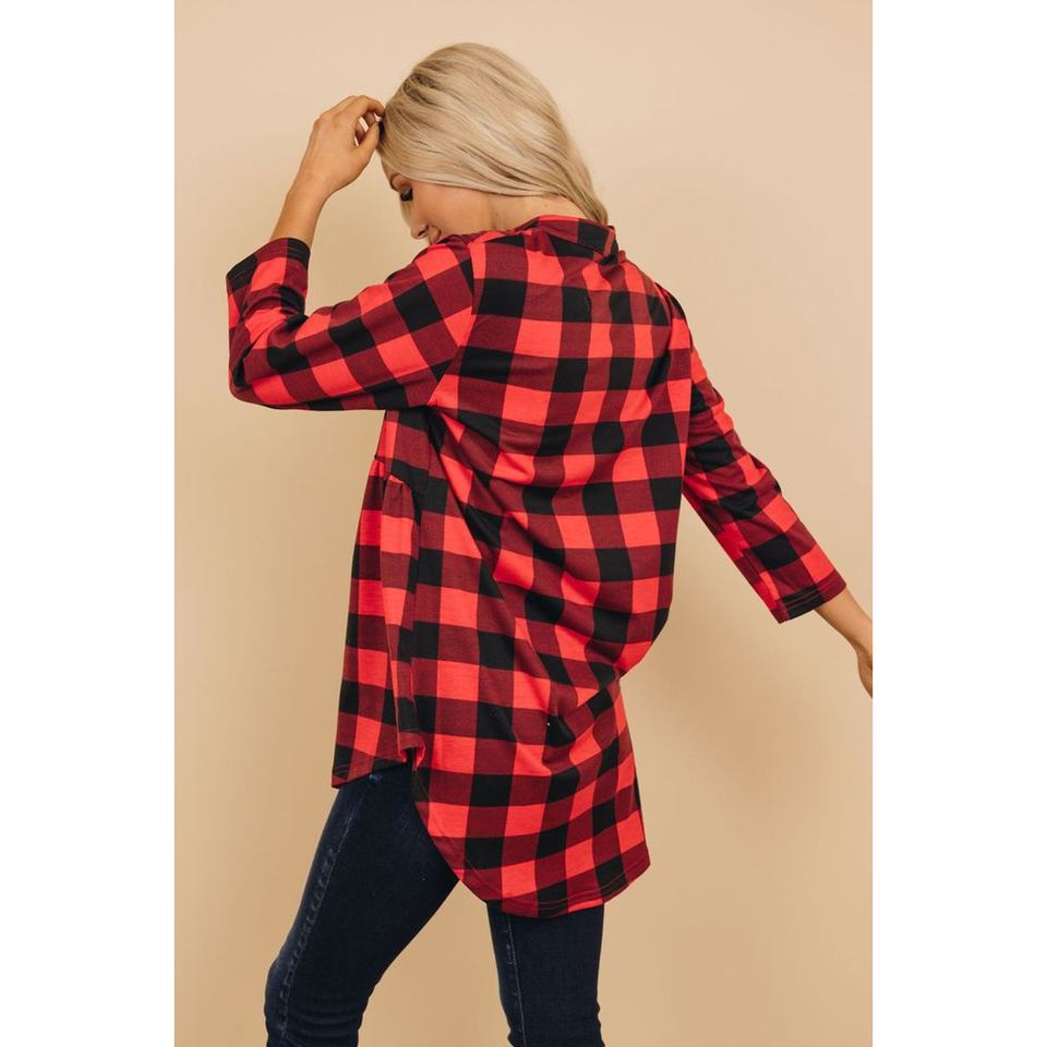 TD Extrovert Plaid Tunic Elegant Casual Day Dress Puff Sleeves Empire Ruffles Knee-Length High for Spring Autumn Winter