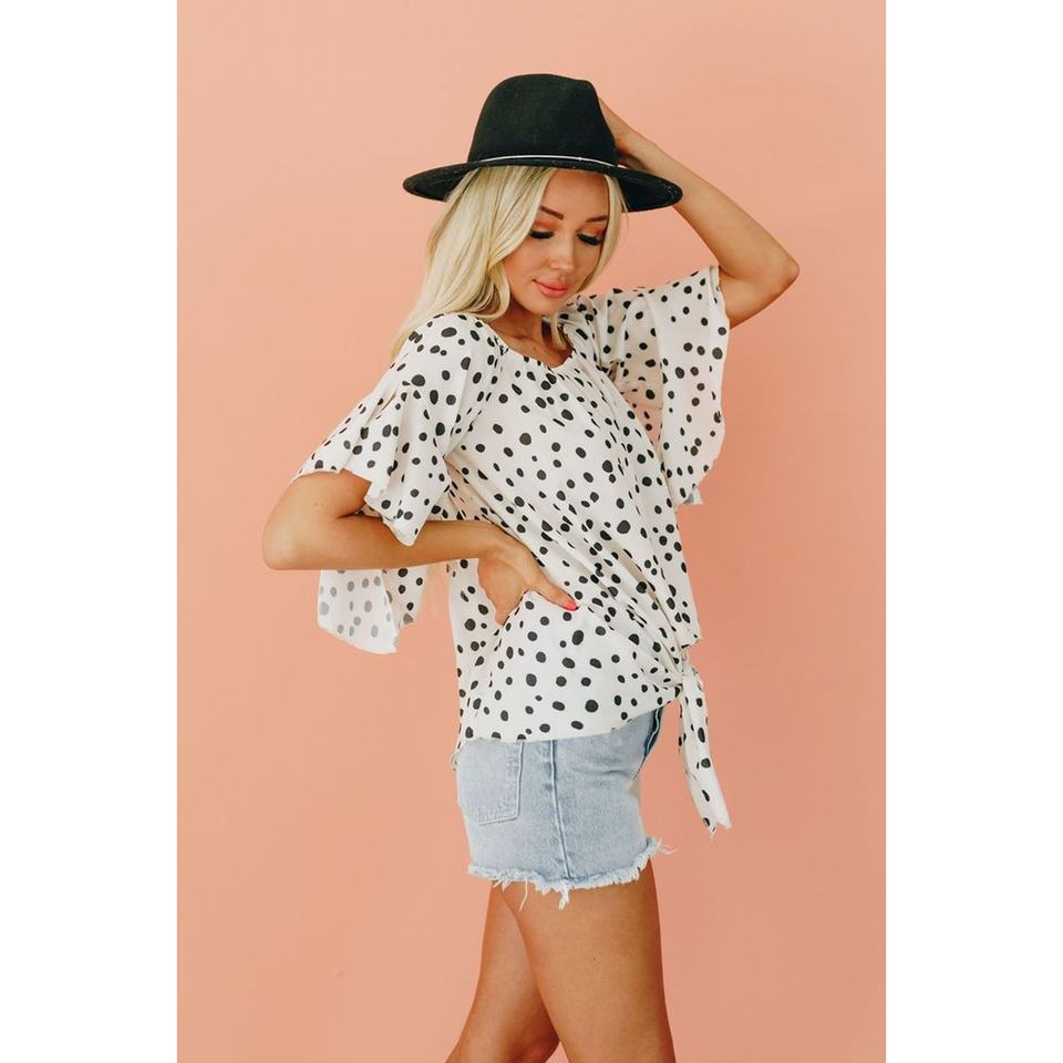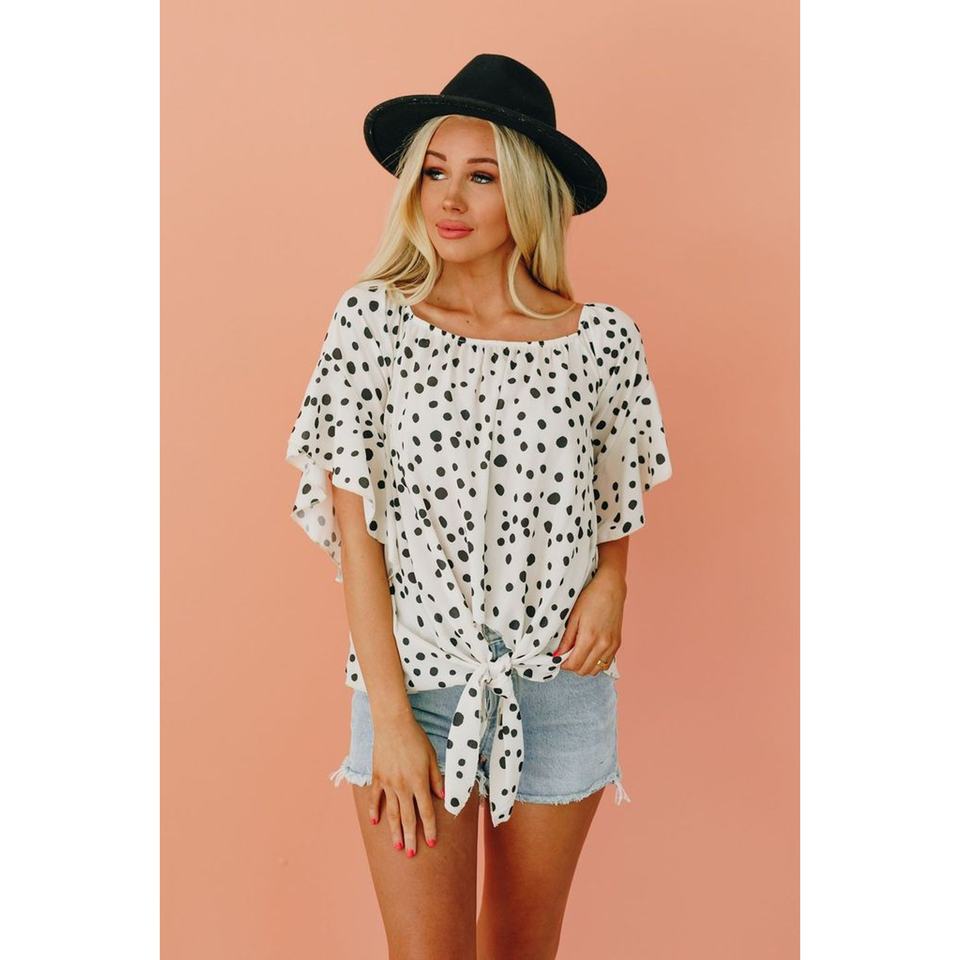 TD Home Bound Polka Dot Top Classy Floral Leather Plus-Size Halter Neck XL Larger Sizes Autumn Vacation Party Clothes Lining