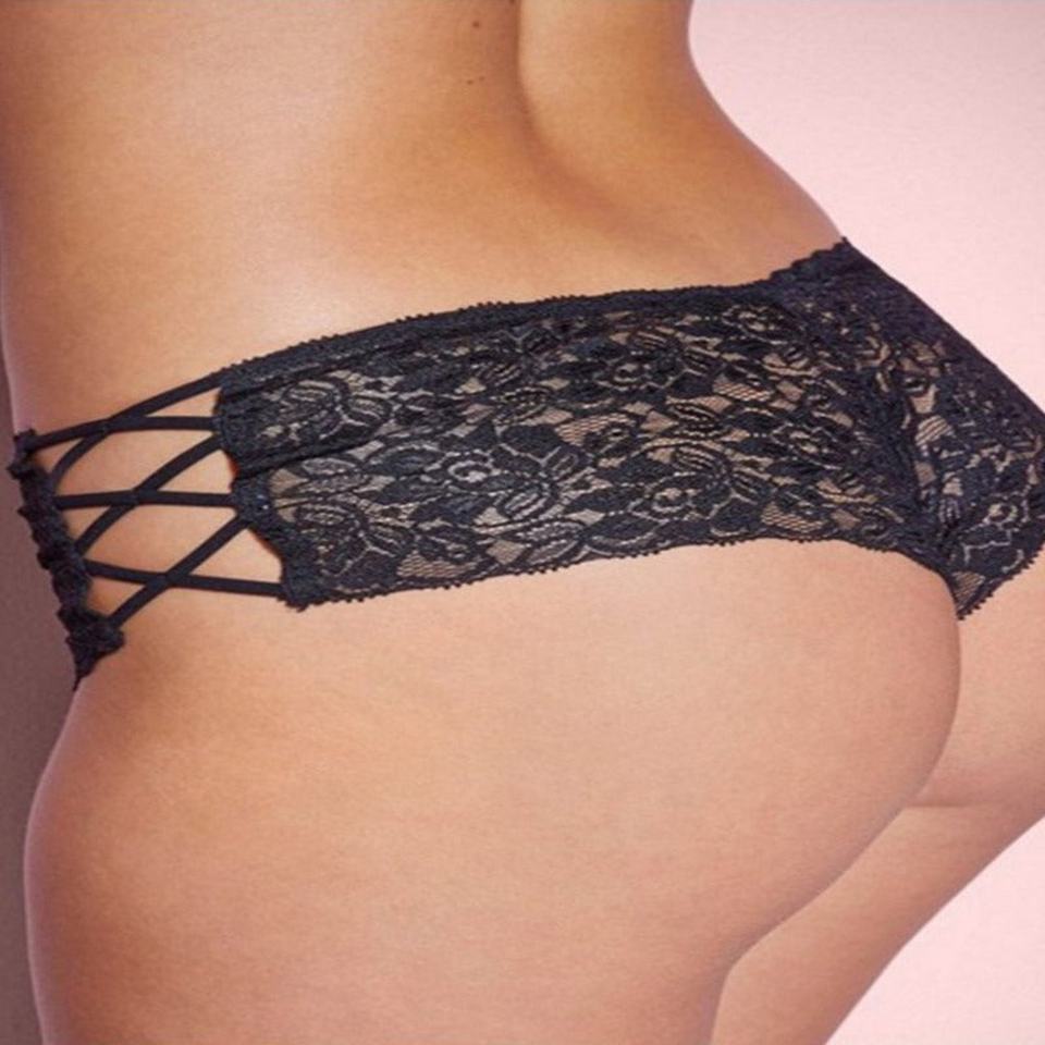 TD La Belle Fantastique Women's Sexy Crisscross Lace Thong with Hollow-Out Sides