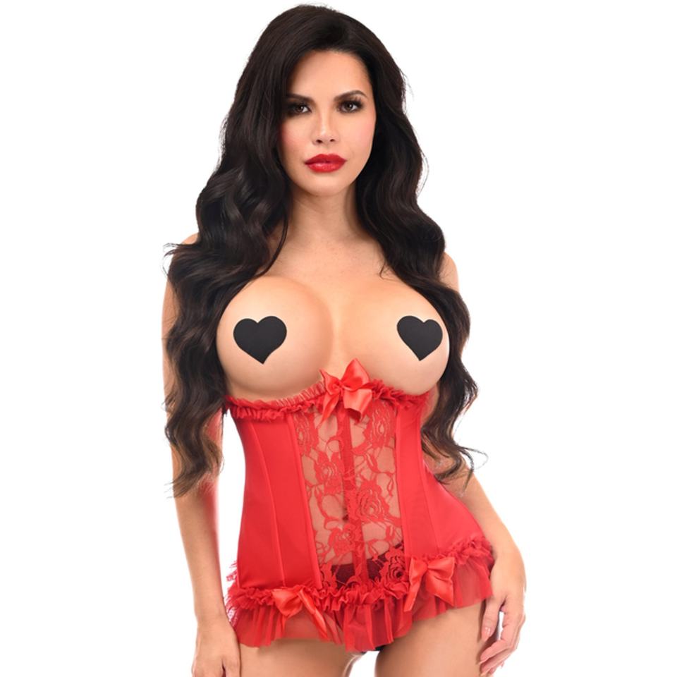 TD Lavish Red for Lycra & Lace Hook & Eye Stretch Underbust Corset Luxurious Shaper for Women