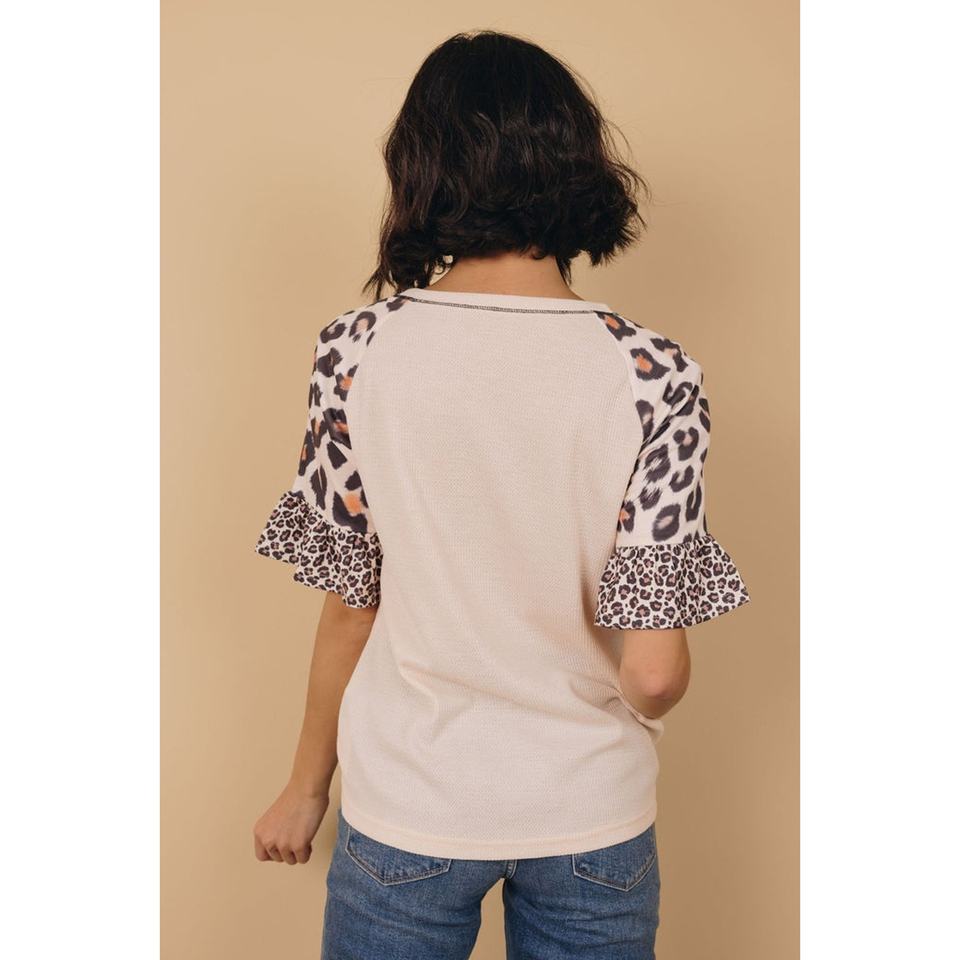 TD Lenny Asymmetrical Collar Silk Chiffon Top Embroidered Leopard Print Ruffle Sleeves Sequins Lace Decoration XL for Autumn