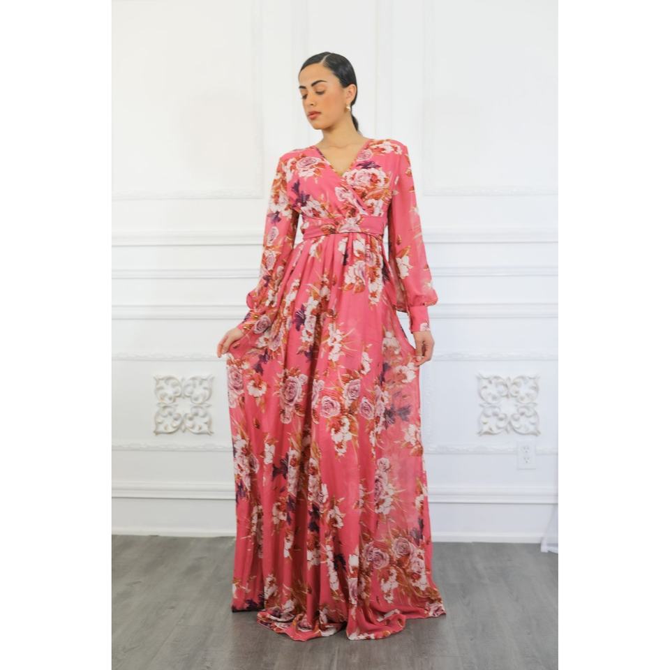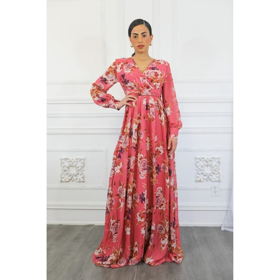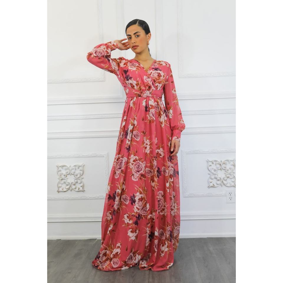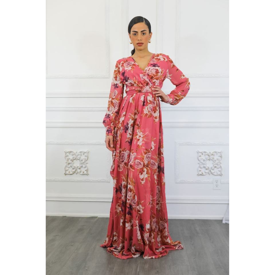 TD Malaysia Floral Maxi Dress Pink Mauve Elegent Modest Party Style Square Collar/Strapless Solid Pattern One for Spring Days