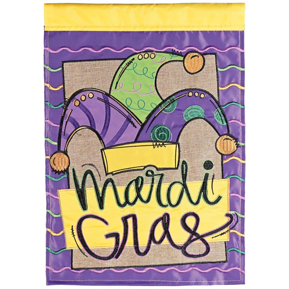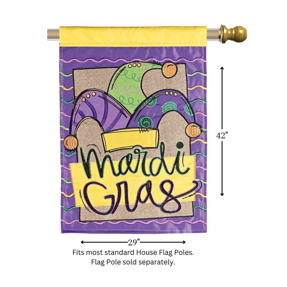 TD Mardi Gras Jester Hat Flag 29x42 Inches Festive Carnival Theme