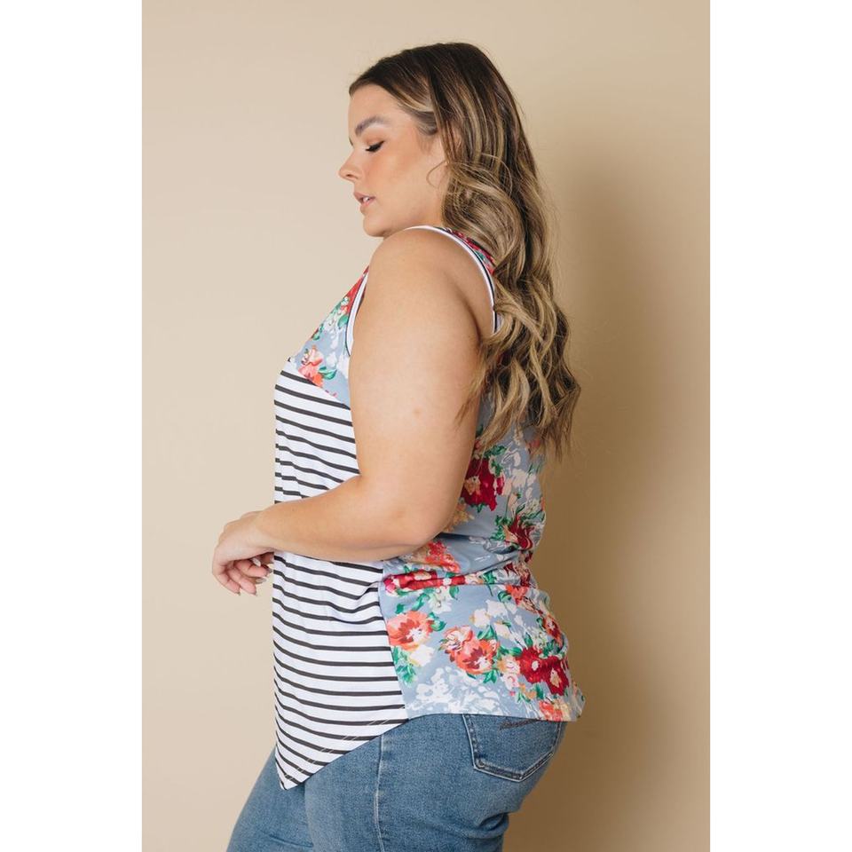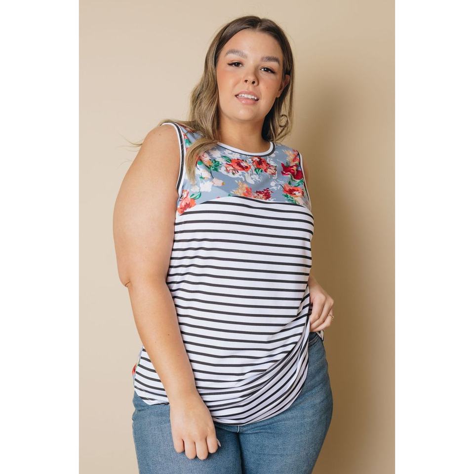 TD Plus Size Casual Tank with Time Stripe/Floral Print Summer Knitted Jersey Beaded Embroidered Sequined Collar Bow Crop Tops