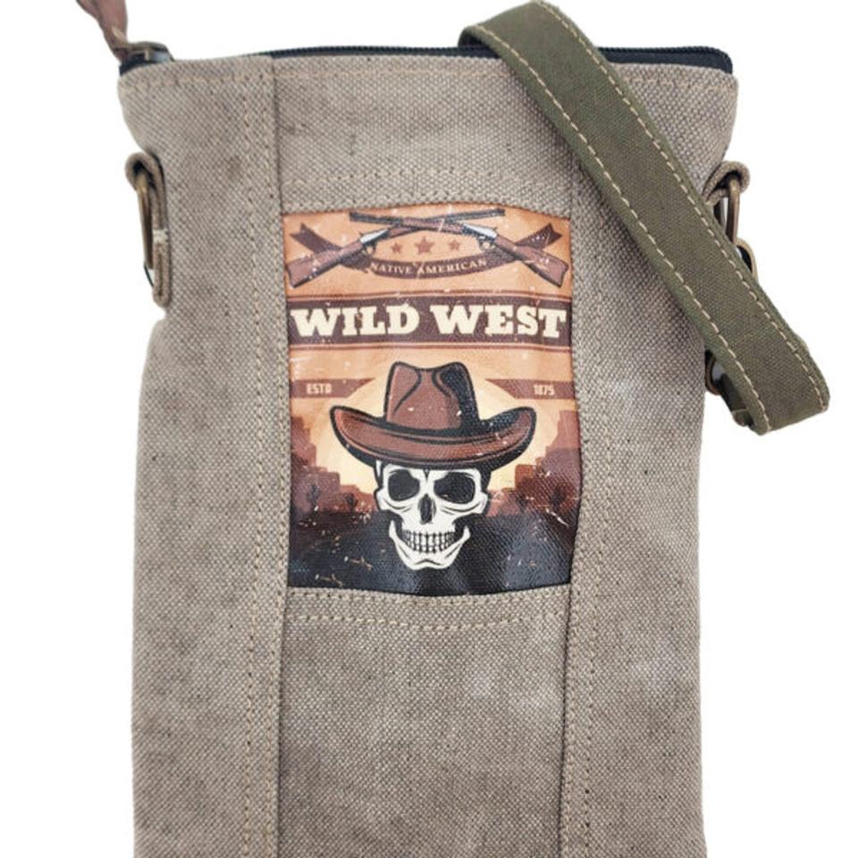 TD Small Crossbody Outdoor Bag Skull and Wild West-Themed Recycled Tent Design