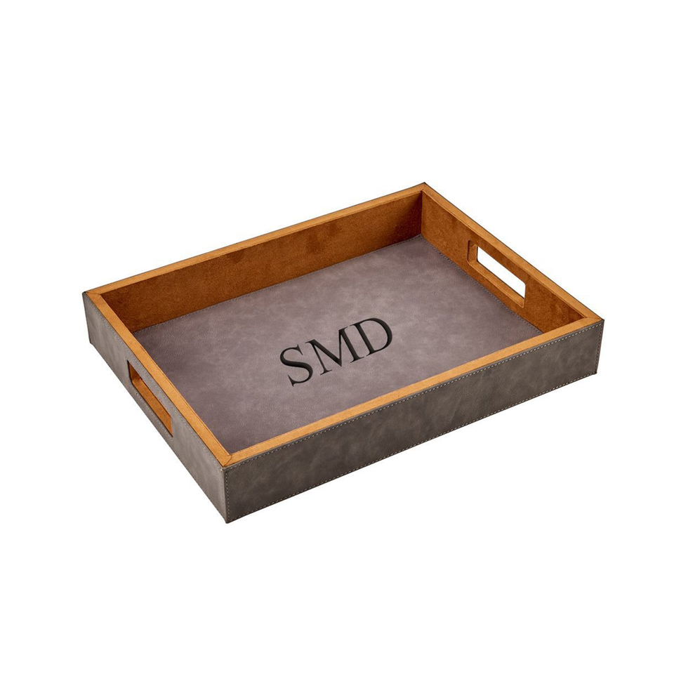 TD Sustainable 16\" X 12\" Grey Leatherette Tray Square Acrylic Wood Serving Tray for Home Use