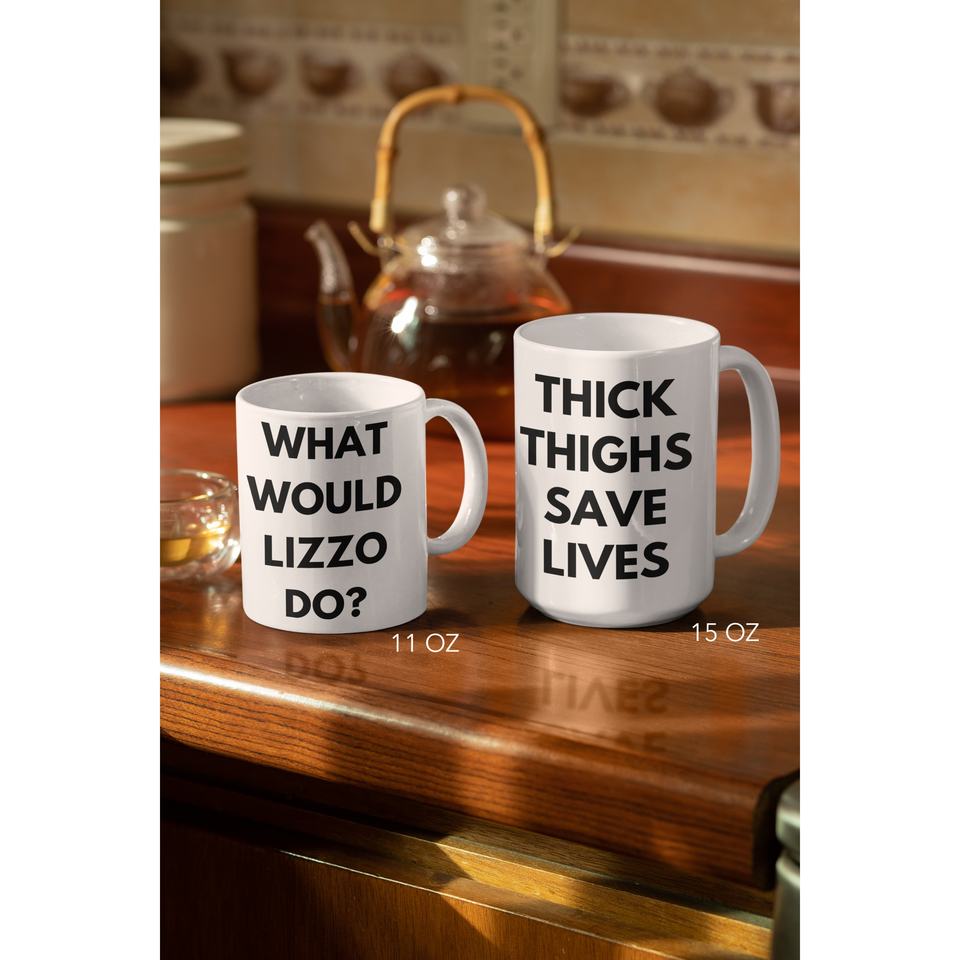 TD Thick Thighs Save Lives Ceramic Coffee Mug What Would Lizzo Do?