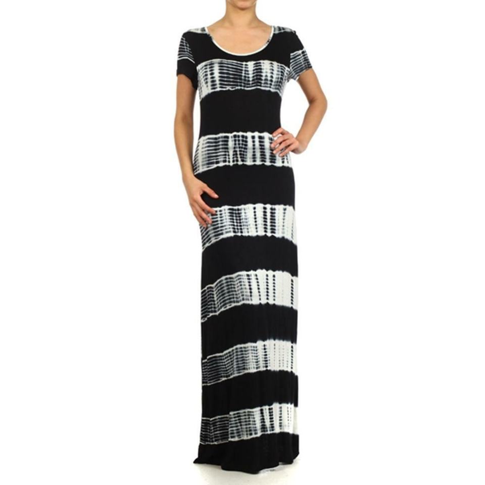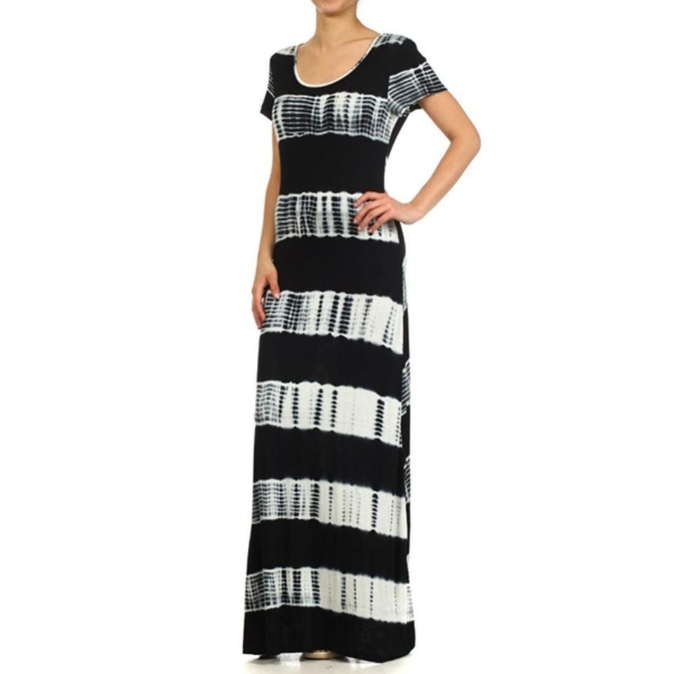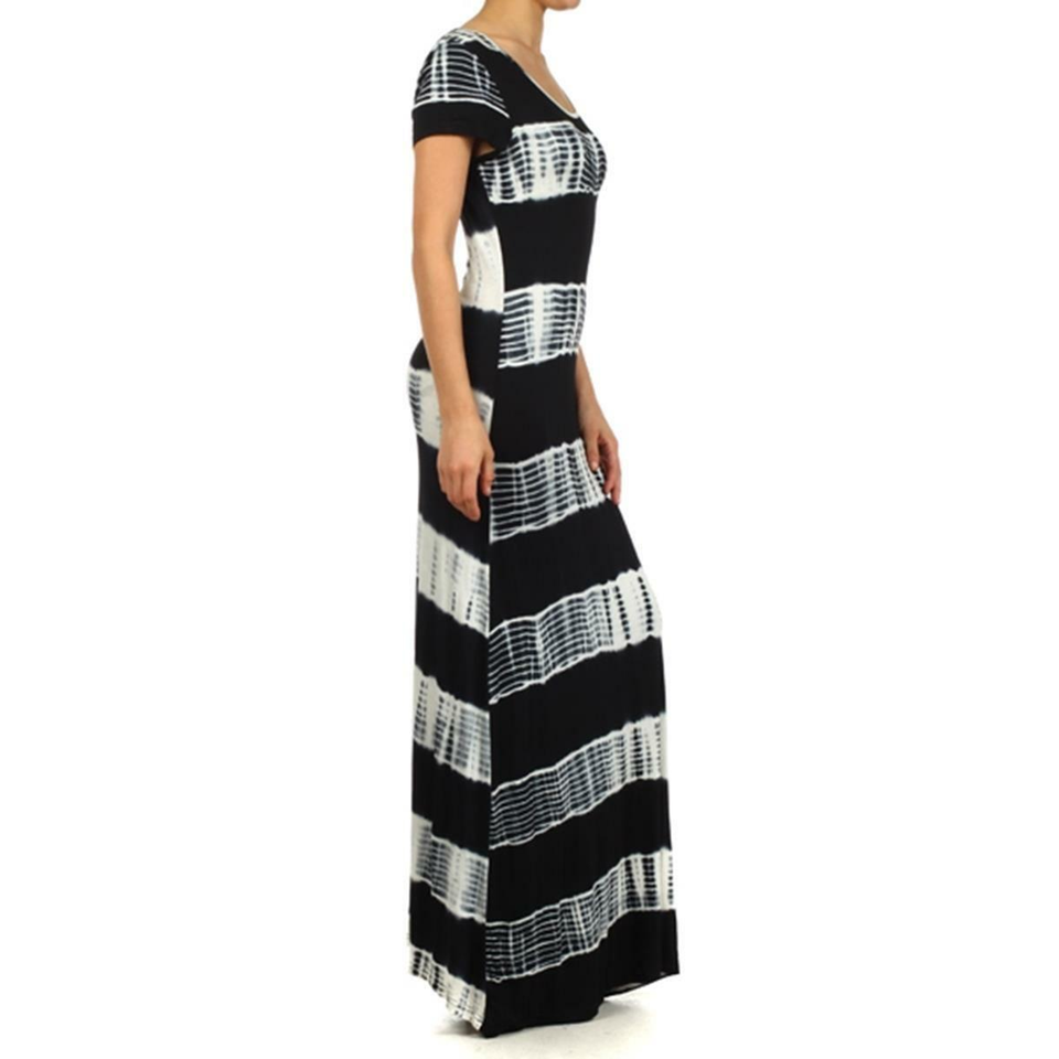 TD Tie Dye Black Maxi Dress for Women Polka Dot Pattern with Ruffles Office Lady & Party Style Formal One Size & XS Sustainable