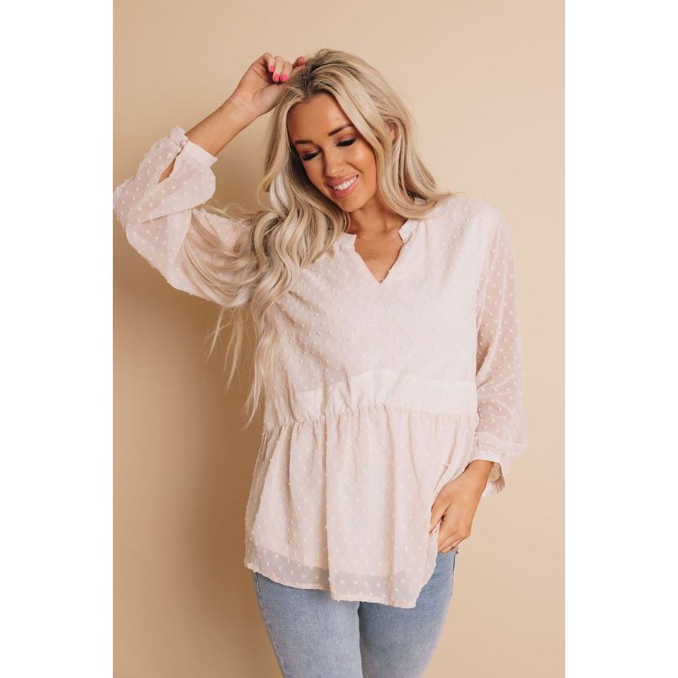 TD Women's Casual TD Lovin' Myself Dotted Top Embroidered Logo XL Size Viscose Cotton Woven Summer Daily Fashion Chiffon Top