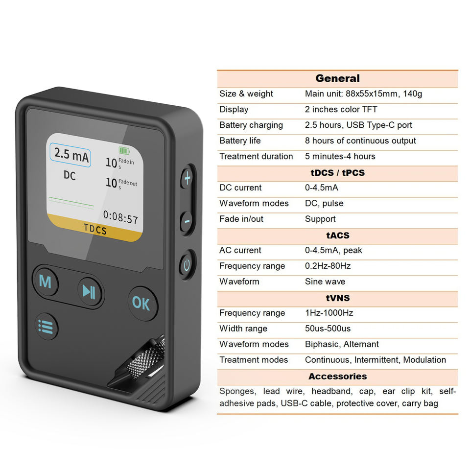 Dispositivo TDCS Kit di Stimolazione Cerebrale Transcranica a Corrente Diretta 4.5mA DC AC a Impulsi TVNS Massaggiatore Antistress per Testa e Orecchie