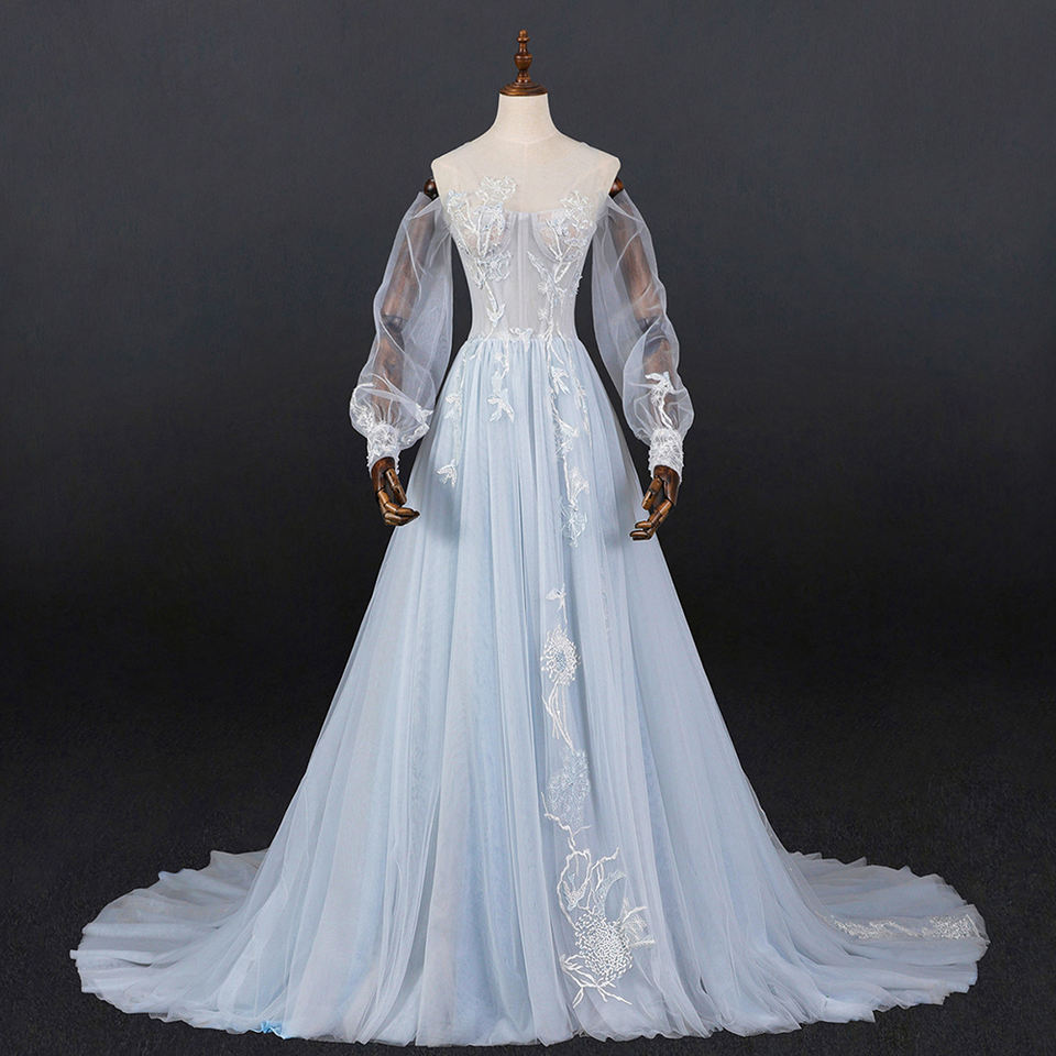 TEENYEE Vestiti da Sposa Guess su Misura con Corsetto e Spalle Scoperte a Illusione, Abiti da Sera Blu Polvere