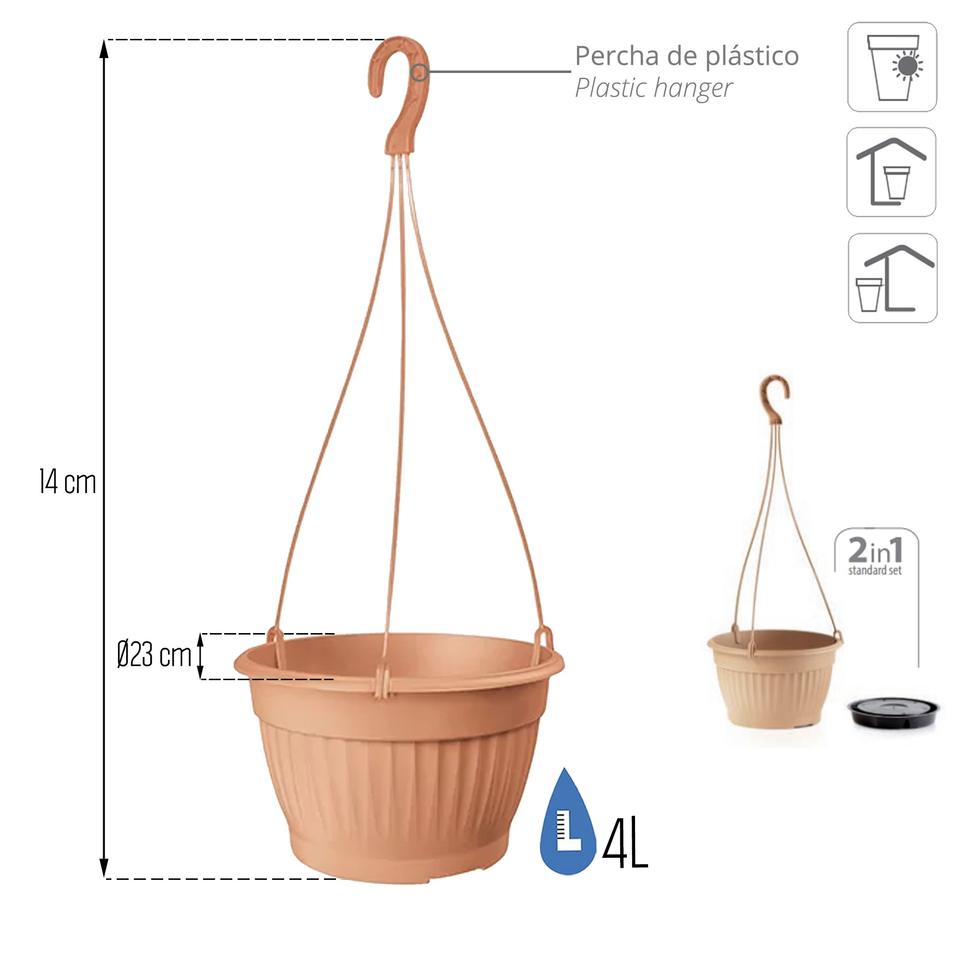 Fioriera pensile TERRA 4L, dimensioni (mm) 230x230x140, colore Terracotta