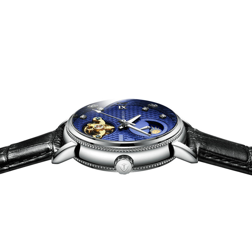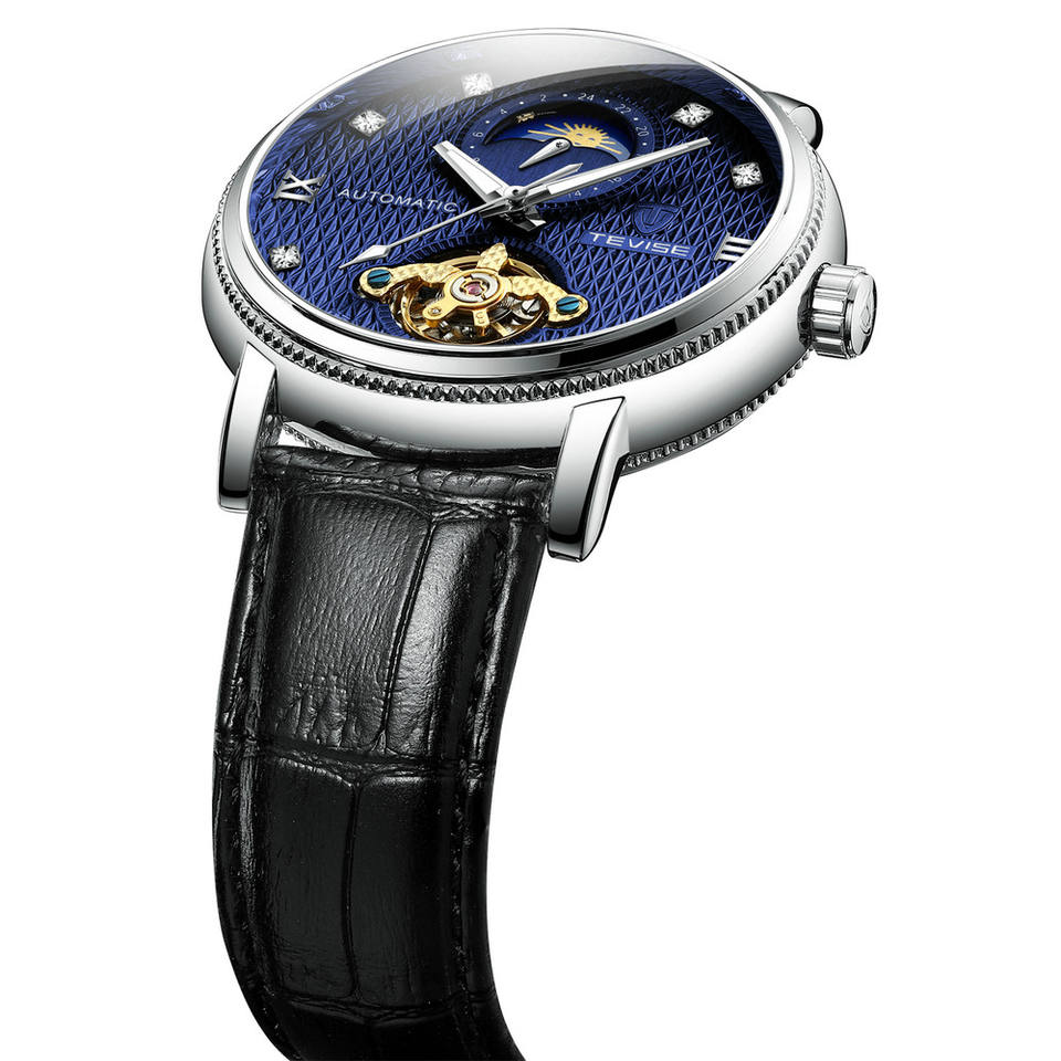 TEVISE T612 Elegant Fashion Men's Automatic Mechanical Wristwatch Hollow Out Leather Band Business Moon Phase Tourbillon Watches