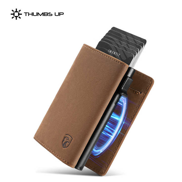 THUMBS-UP Minimalist Slim Genuine Leather Trifold RFID Blocking Magnetic ID Window Slot Man Credit Card Holder Men Wallet