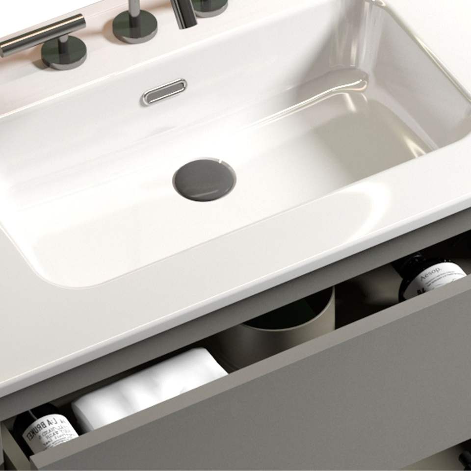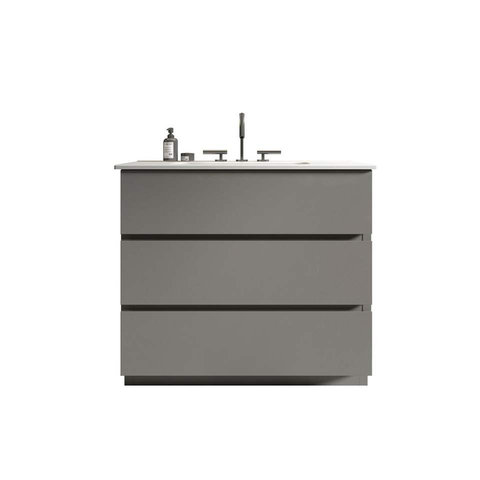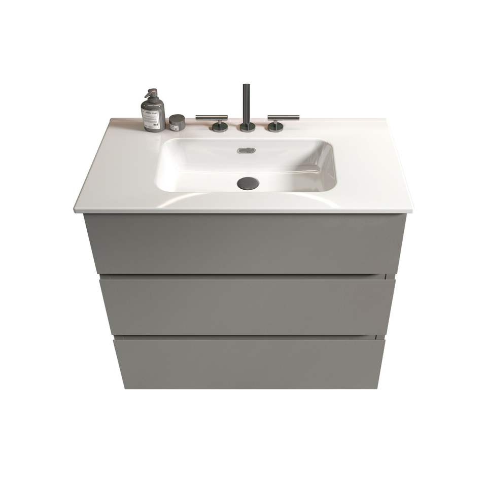 Mobile bagno moderno TIA da 90 cm grigio con lavabo, 3 fori per rubinetteria, ampio spazio contenitivo, mobiletto autoportante per bagni piccoli