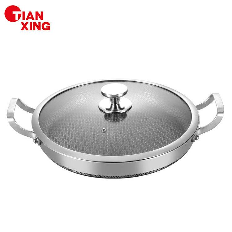 TIANXING Durable Nonstick Honeycomb Pan Steak Egg Chef Pan Double Handle Frying Pan with Tempered Glass Lid
