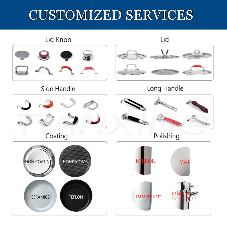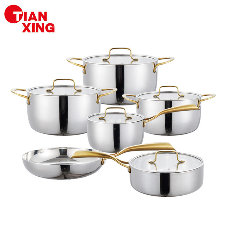 TIANXING set di pentole in acciaio inossidabile a tre strati con manico in oro antiaderente per cucinare zuppe e pentole e padelle