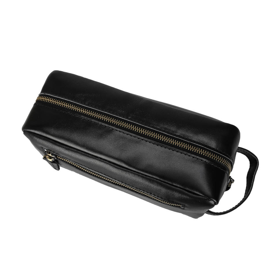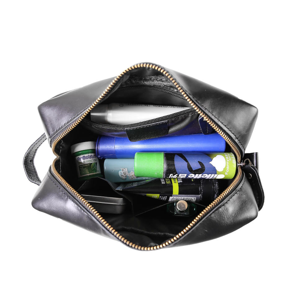 TIDING Borsa da Viaggio per Rasatura in Vera Pelle di Vacchetta per Uomo, Grande Capacità, Personalizzabile, Nera, alla Moda