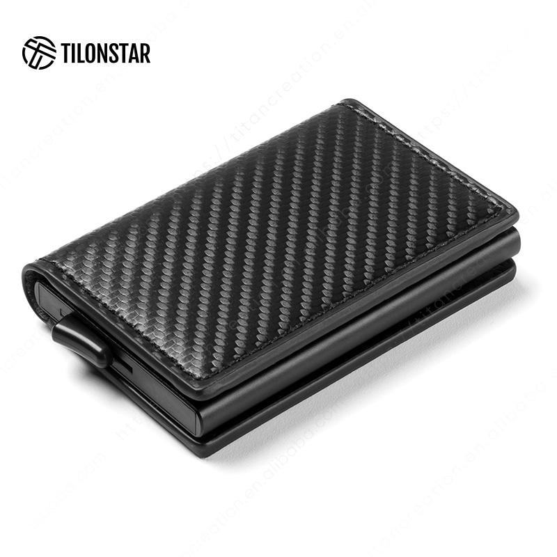 TILONSTAR TVC201 Custom Carbon Fiber Black Aluminum Rfid Card Wallet Men Pop up Card Holder