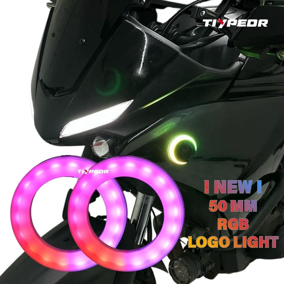 TIYPEOR modulo LED per logo 50 mm RGB con anello di copertura Angel Eyes, 12-24V DC, compatibile con BMW e YAMAHA