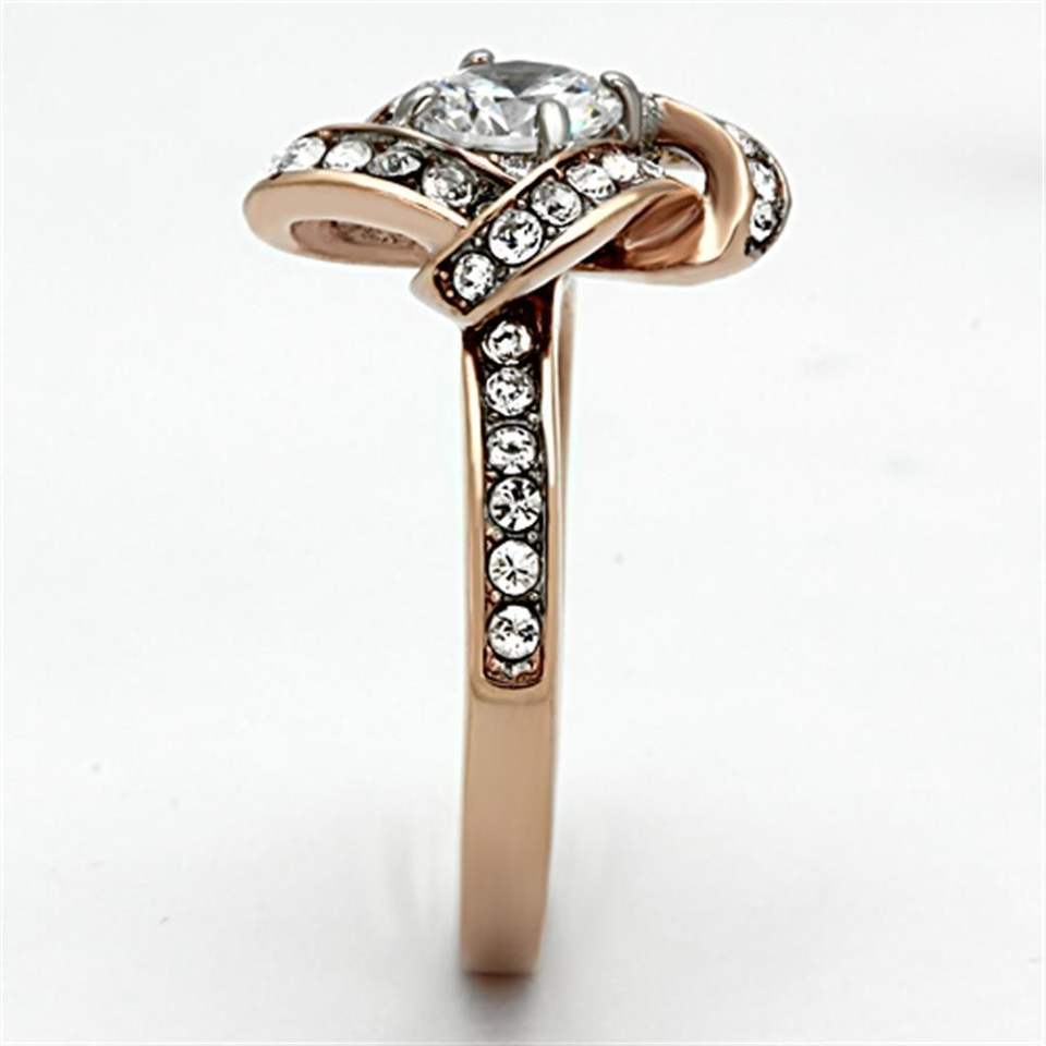 D0100HE9EQY Anello Bicolore in Acciaio Inossidabile Oro Rosa con Pietre CZ Trasparenti di Grado AAA e Set di Piatti