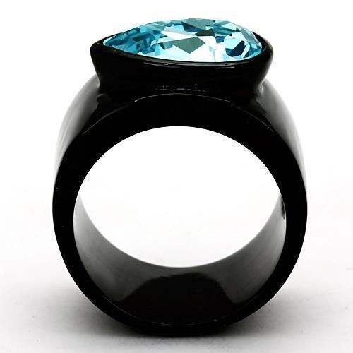 D0100HE9APA Anello in Acciaio Inossidabile di Alta Qualità con Zaffiro Chiaro e Cristallo, Finitura IP Nera (Placcatura Ionica)