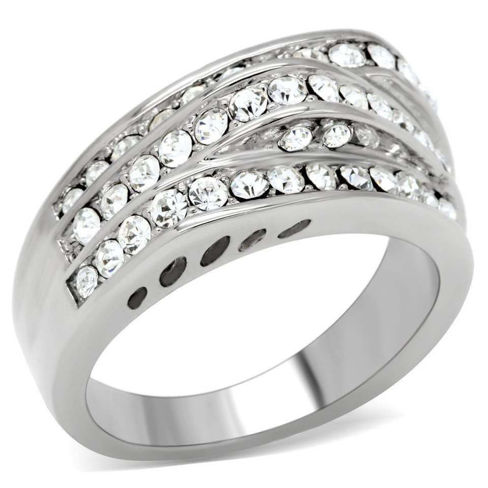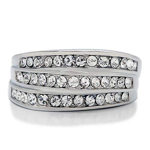 Anello TK188 in Acciaio Inossidabile Lucidato con Cristallo Trasparente di Alta Qualità, Anello alla Moda Senza Placcatura