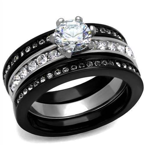 Anello TK2304 Bicolore in Acciaio Inossidabile IP Nero (Ion Plating) con Zirconi Cubici di Grado AAA