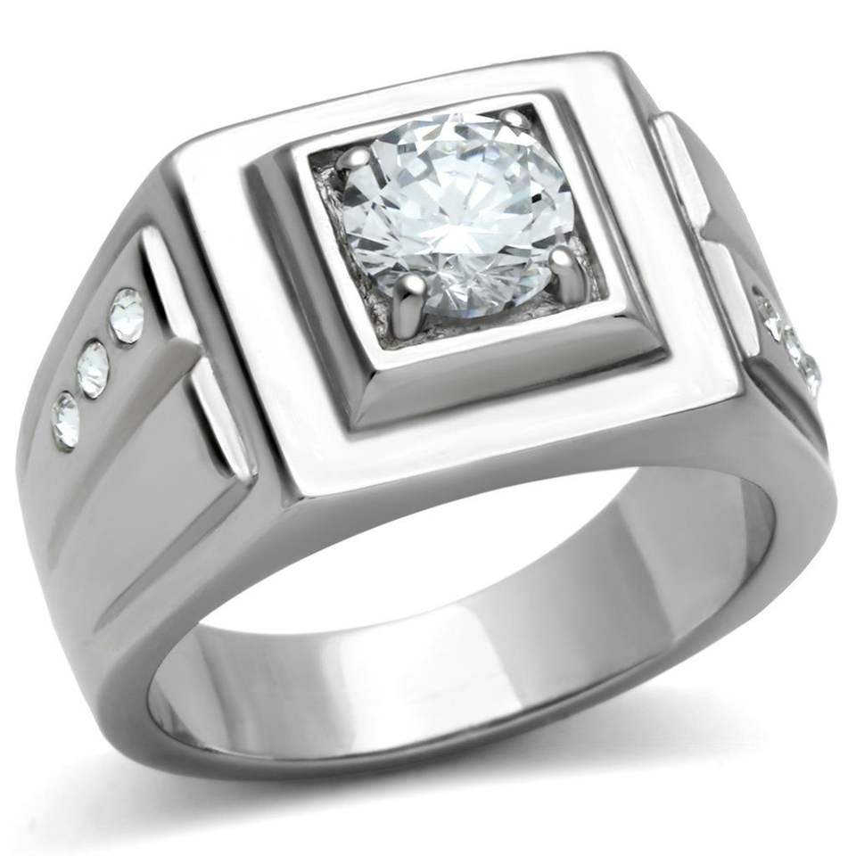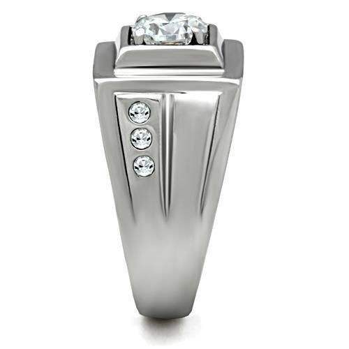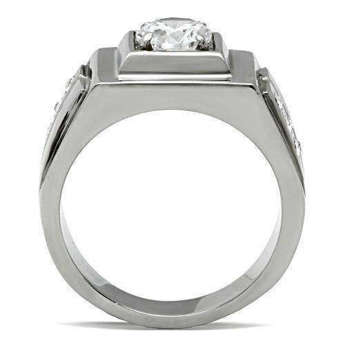 Anello in Acciaio Inossidabile Lucidato TK313 con Zirconi Cubici di Grado AAA - Piatti e Stoviglie
