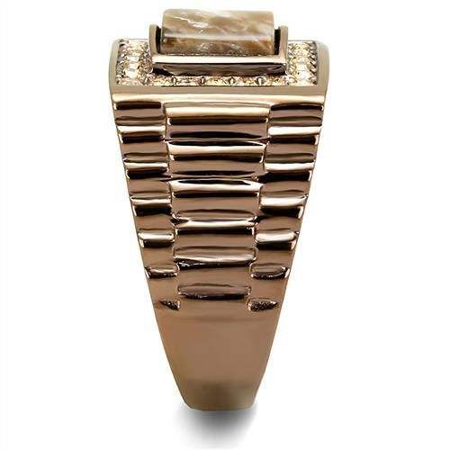 TK3190 - Anello in acciaio inossidabile con pietra semipreziosa a forma di fiore, marrone IP, per piatti e stoviglie leggere