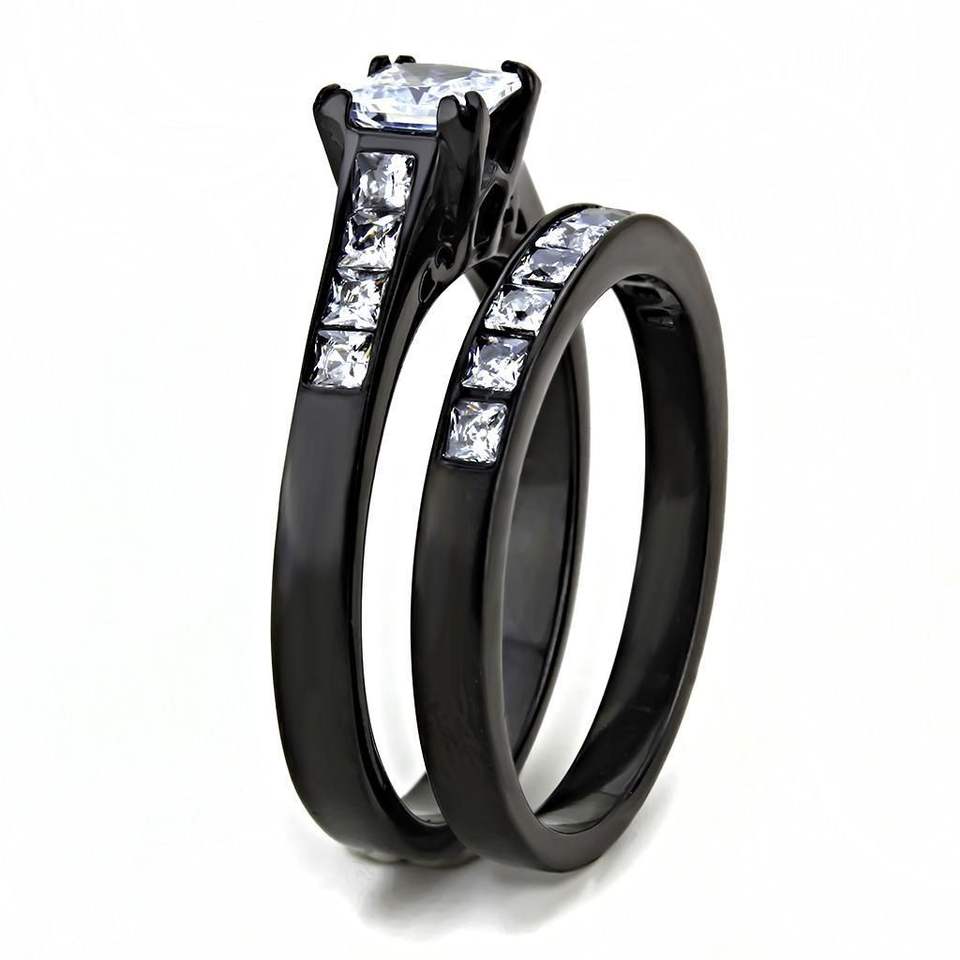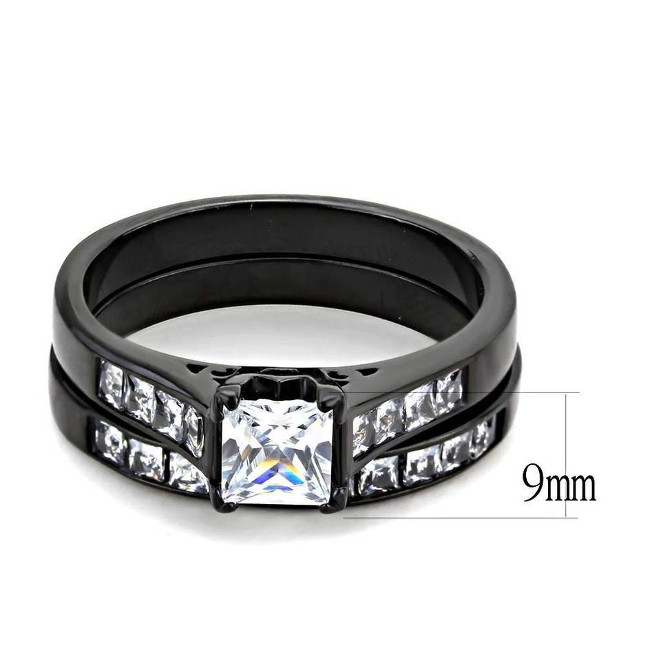 Anello TK3555 in Acciaio Inossidabile Nero Trasparente (Ion Plating) con Zirconi Cubici di Grado AAA, Anelli alla Moda