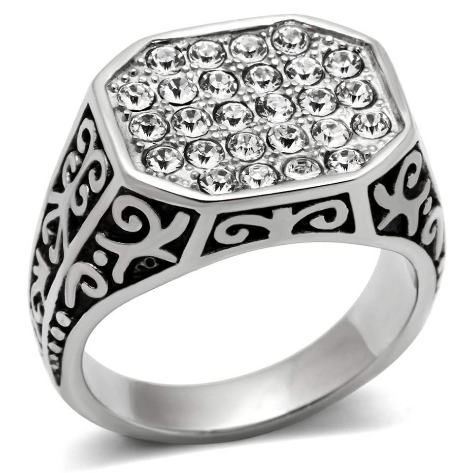 Anello in Acciaio Inossidabile Lucidato TK362 con Cristallo di Alta Qualità e Piatto Trasparente