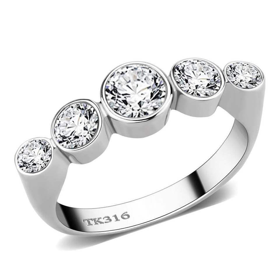 Anello in Acciaio Inossidabile Lucidato a Specchio TK3697 con Zirconi Cubici di Grado AAA - Piatti e Stoviglie