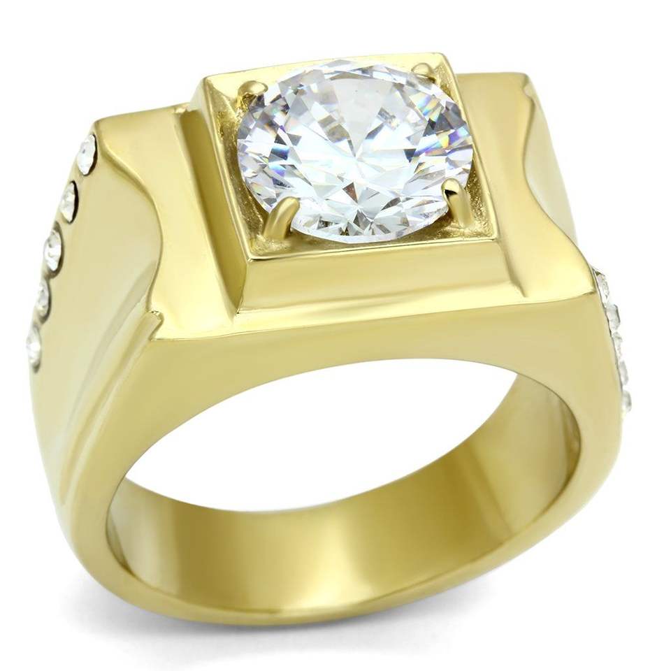 TK721 - Anello in Acciaio Inossidabile con Zirconia Cubica di Grado AAA, Placcatura IP Oro (Ion Plating) per Piatti e Vassoi Trasparenti