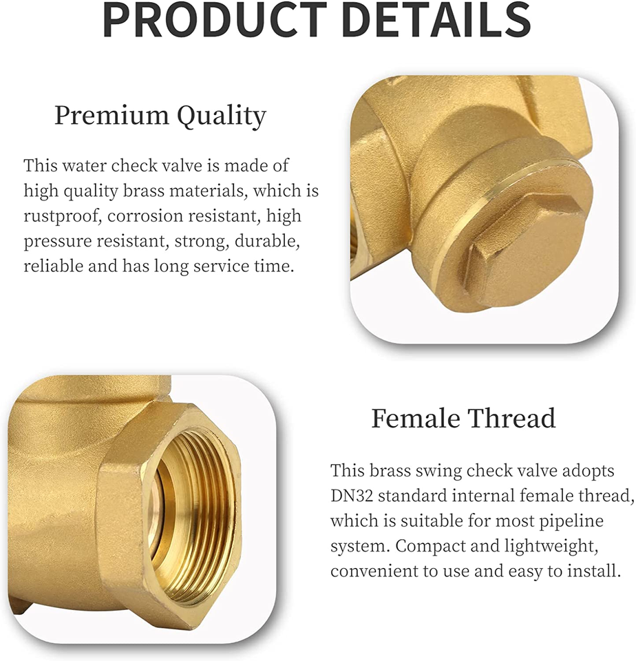 Valvola di Non Ritorno Orizzontale in Ottone TMOK RTS DN25 1 Pollice Femmina, Valvola di Ritegno a Battente Unidirezionale