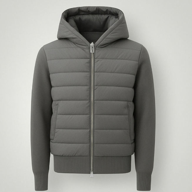 TN Factory Custom-made Men's Slim Fit Zip-Up Hybrid Jacket for Spring Autumn Warm Front Down-filled Padded and Wool Sleeve Back