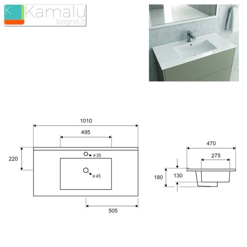 TOD-100LB Kamalu 100cm mobili da bagno con carcassa in PVC lavabo in ceramica lavabo porte