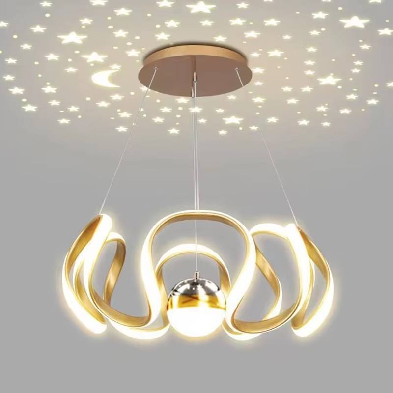 TOGETHER Nordic Hotel Lobby Home Staircase Gold Sky Star Led Ring Chandelier with Three Light Balls for Living Room