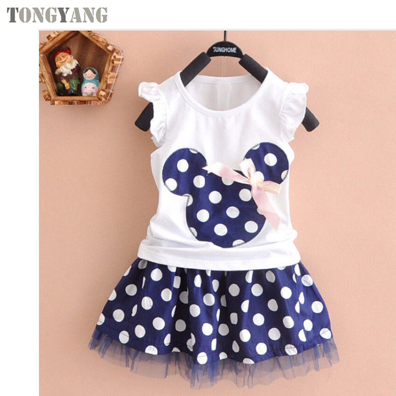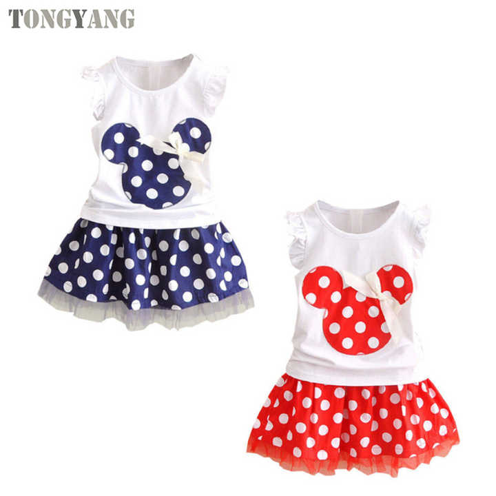 TONGYANG Clothes Set Kids Baby Girls Summer Outfits Clothes Sleeveless T-shirt Tops Polka Dot Tutu Skirt Party