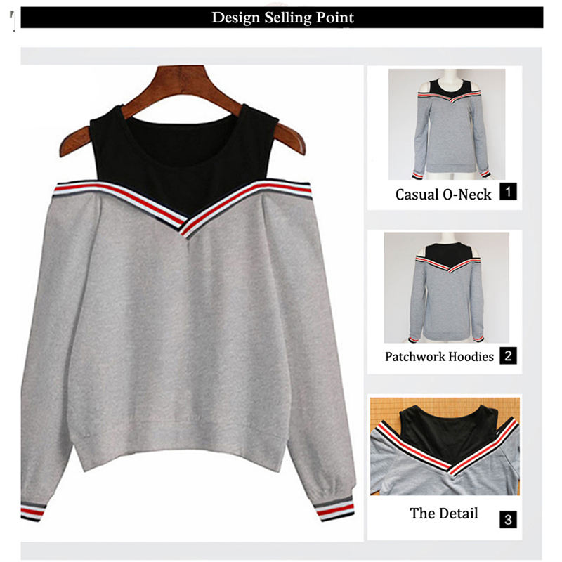 Felpa con cappuccio TONGYANG 2018 felpe con cappuccio Patchwork con spalle scoperte Top pullover girocollo tuta da donna