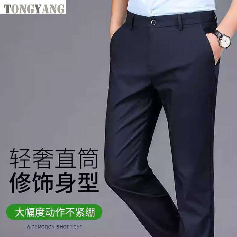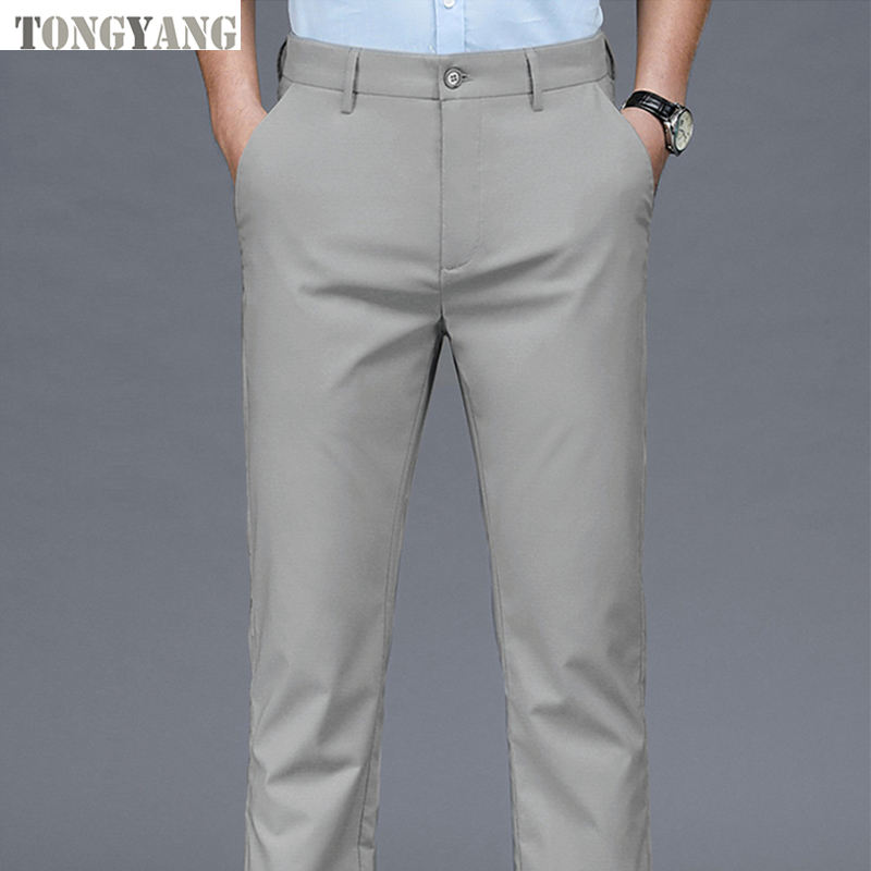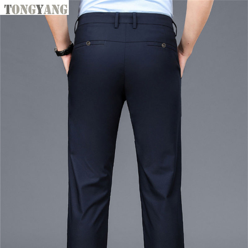 TONGYANG Male Pants Stretch Solid Black Smart Casual Men's Trousers Office Quick Dry Suit Pants New Spring Autumn Straight Pants