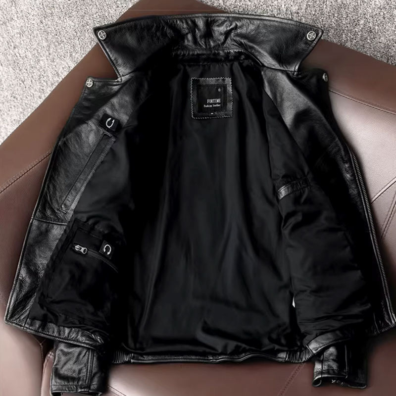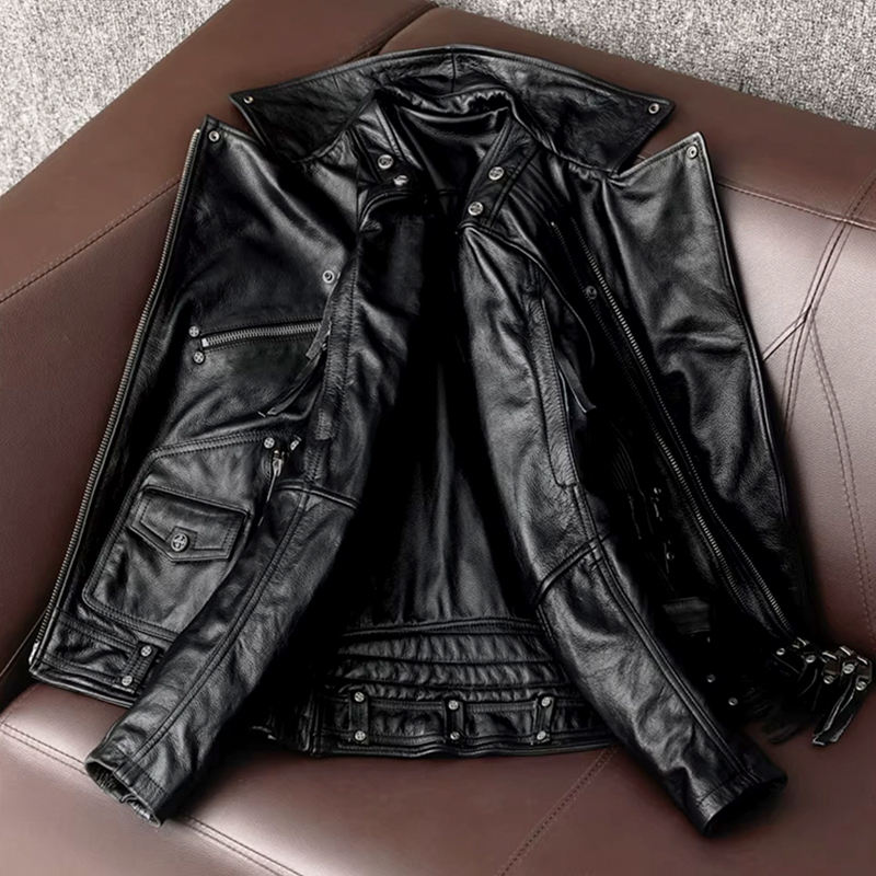 Giacca da Moto in Vera Pelle per Uomo TONGYANG, Cappotto in Pelle Bovina di Alta Qualità, Abbigliamento da Motociclista con Cerniera