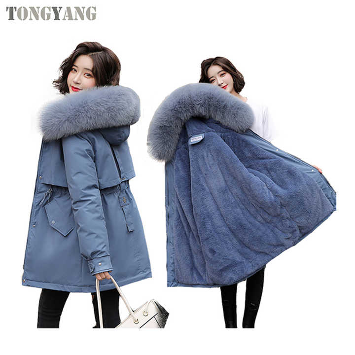 TONGYANG New Cotton Liner Warm Parka Waterproof Jacket Women Slim Long Coat Female Winter Big Fur Hooded Parka Coats