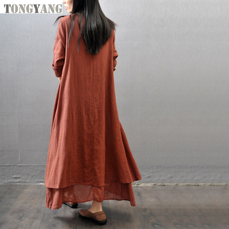 TONGYANG Abiti vintage da donna in cotone e lino, abito monopetto ampio con tasche, vestito maxi casual da donna in un pezzo, taglie grandi