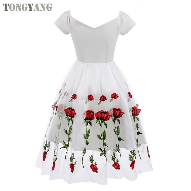 TONGYANG Women Party Dresses Summer Off Shoulder Elegant Evening Sexy Club Dresses Embroidered Flower Dress