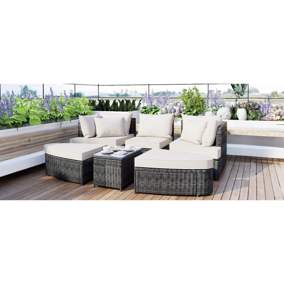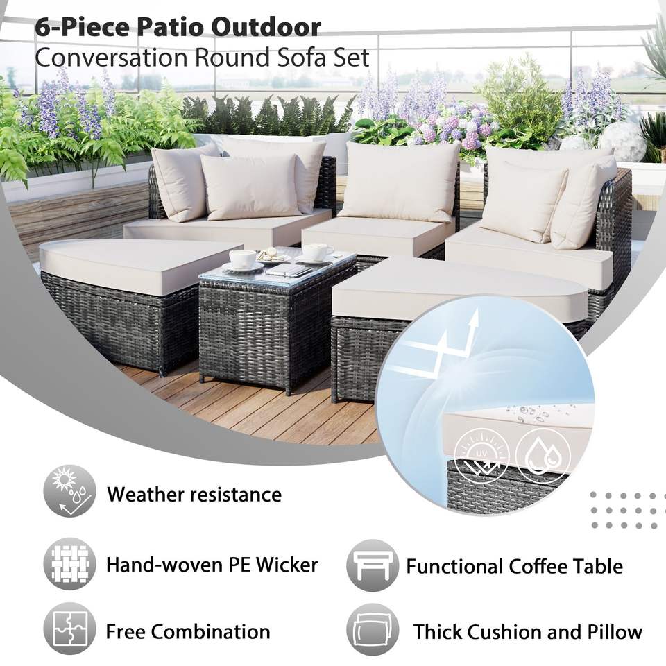 TOPMAX 6-Piece PE Wicker Rattan Patio Outdoor Furniture Set Beige Sofa Separate Seating Group Coffee Table for Conversation