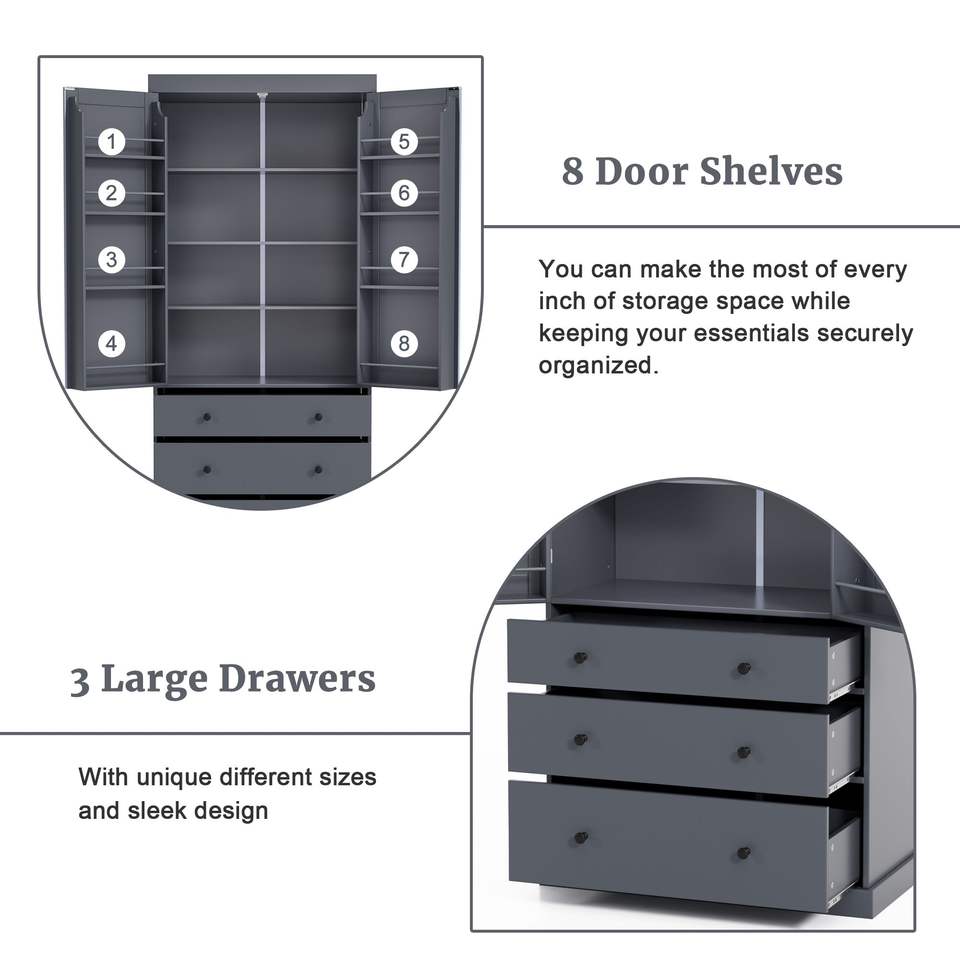 TOPMAX Armadio da Cucina Stile Fattoria da 77 Pollici, Mobile Alto Indipendente con 3 Ripiani Regolabili, Video di Montaggio
