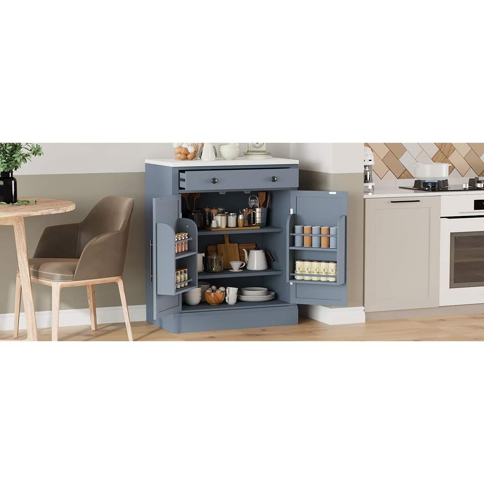 TOPMAX Dispensa da Cucina Moderna Autoportante con 2 Ripiani Regolabili, Mobile Bar Caffè, Cassettiera Buffet per Conservazione Alimenti e Video di Montaggio Inclusi