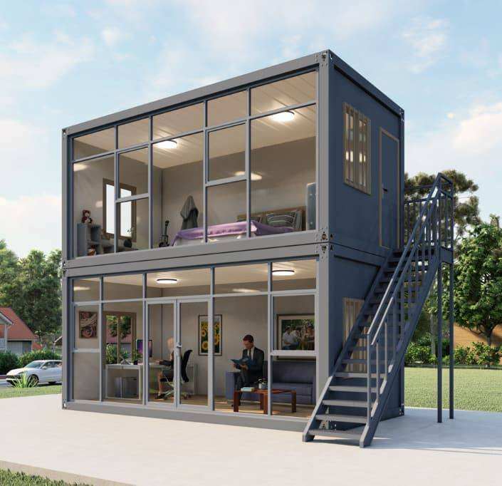 Casa Container TOPPRE Smontabile con Struttura Moderna in Acciaio su 2 Piani, Dependance su Due Piani, Casa Container con 2 Camere da Letto in Vendita